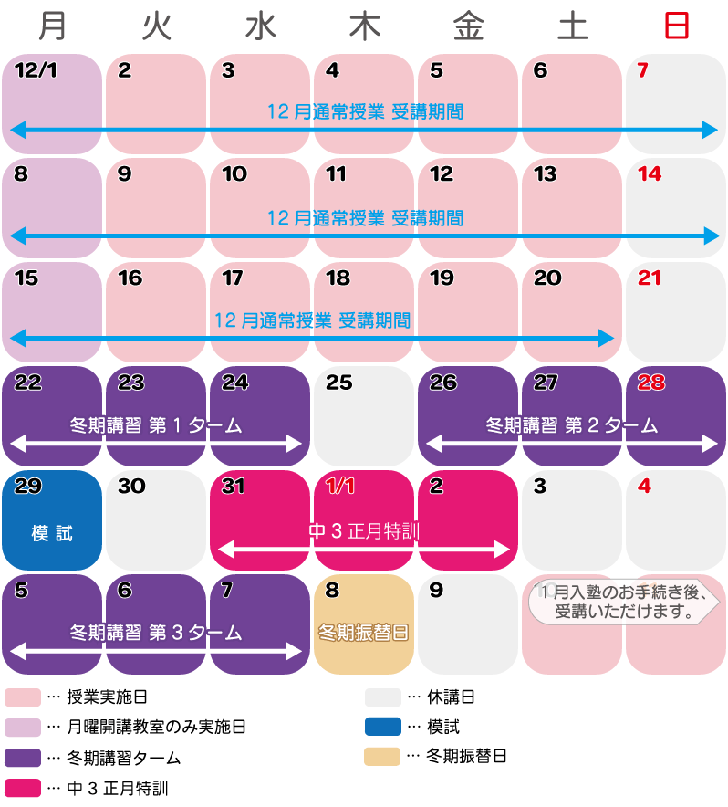 12月+冬期講習体験 12/1(月)~1/7(水)