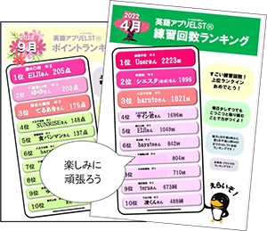 上記コンテンツに加えて、毎月6日に、英語力向上のための課題をアプリ内に出します。スピーキング問題、リスニング問題、文法問題、読解問題、会話問題など、さまざまな種類で出題しますので、1ヶ月内に取り組みましょう!