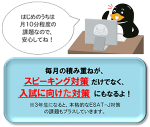 • 2022年度教科書改訂による、"英語コミュニケーション""論理・表現"対策として、英語を用いたスピーチやディベートの能力を培っていきます。